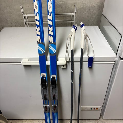 Skilom Light Touring smørefri (ca. 182 cm) selges med Swix skistaver (ca. 134 cm).