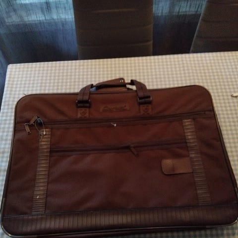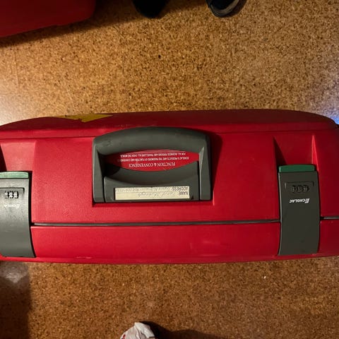 Solid koffert selges. Det ene hjulet er ødelagt, derfor selger jeg den. Ellers er den ganske bra og holder masse, vanntett materiale.