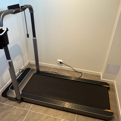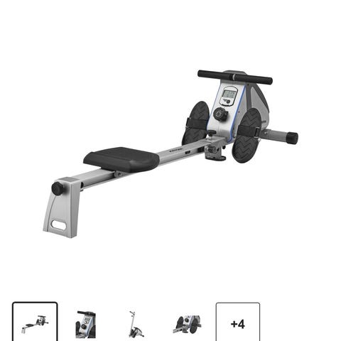 Kayoba romaskin. Kjøpt på Jula. Sammenleggbar. Hælkappen på høyre side er ødelagt, men en stropp kan sikkert gjøre samme nytten.