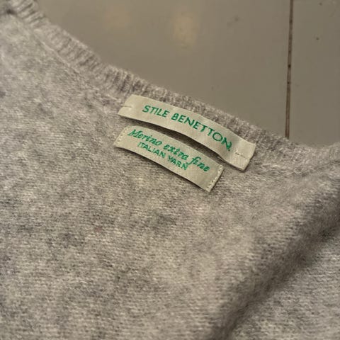 Rosa genser i italiensk merinoull fra Benetton. Det står XL på lappen, men den er liten i str og passer en L (jeg bruker vanligvis str 40 og den passer meg). Noen nupper på innsiden, ellers pent brukt.