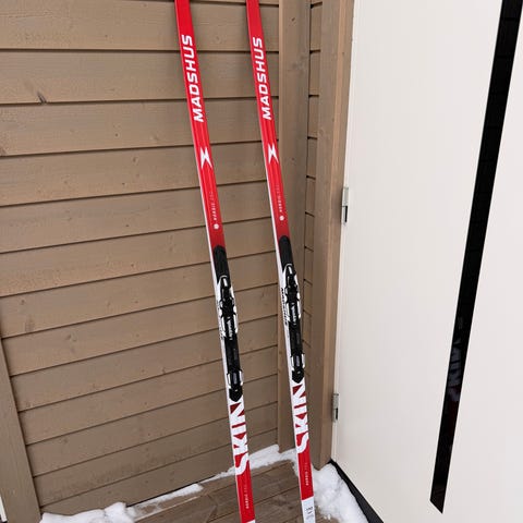 Madshus Suprasonic 3x3, 180 cm. Mener dette er skate-varianten. Pent brukt og knapt noen riper. Satt inn med glider etter hver sesong, og står fortsatt med denne glideren på.
