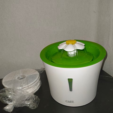 Når den normale vannskålen ikke animerer stuetigeren din til å drikke, er det tid for en plaskende drikkefontene! Catit Blomsterdrikkefontene Rustritt stål er en dekorativ og forlokkende kilde til friskt vann for tørste katter som ikke gidder å drikke fra kjedelige vannskåler.