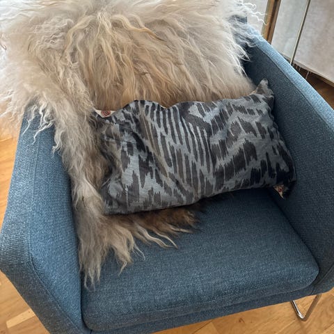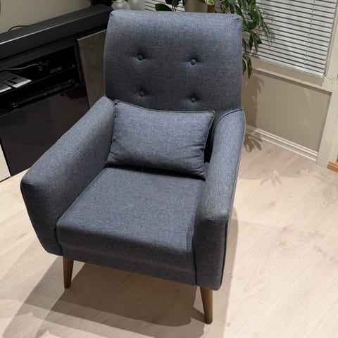 Utrolig behagelig stoler, en jeansblå og en mørk grå.