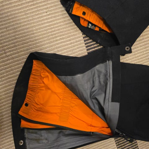 Buksa er laget i Gore-Tex-materiale som gir vanntett og vindtett beskyttelse samtidig som det er pustende. Den har flere glidelåslommer i front, glidelås langs bena for ventilasjon og enklere av- og påkledning, samt forsterkede partier på utsatte områder.