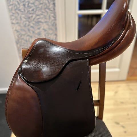 Prestige Roma Jump sprangsal i brun. Salen er i god stand kun liten skramme (bilde 4) men ellers ingen slitasje. Salen er fra April 21, og er blitt pent brukt siden. Læret er fortsatt mykt og dette er en behagelig god sprangsal.