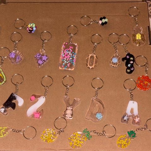 Unik håndlaget nøkkelring laget av klar resin med ekte tørkede blomster. Hver nøkkelring finnes kun i ett eksemplar. Lett og slitesterk – perfekt som gave eller personlig tilbehør. Helt ny. Sendes i hele Norge mot frakt.