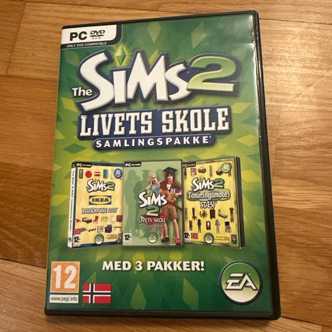 EA The Sims 3 Startpakke PC-spill. Samling for PC som inneholder grunnspillet The Sims 3 samt tilleggspakker vist på omslaget. Spillet er merket med aldersgrense 12 år og er beregnet for PC-plattform. Inneholder fysiske spilldiscer i DVD-esker med norsk omslagstekst der dette fremgår.