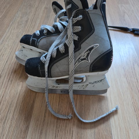 Canada skøyter for ishockey til barn i størrelse 31. Modellen har snøring foran og klassisk ishockeyklinge. Fargekombinasjon i svart og grått med detaljer bak på hælen. Egnet til bruk på isbaner og skøytebaner for barn som trenger stabile ishockeyskøyter i denne størrelsen.