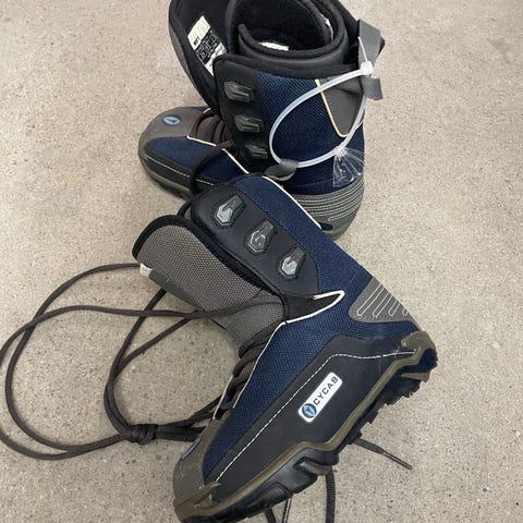 Cycab Aegis snowboardstøvler i størrelse 24,0 (mondopoint). Modellen har snøring foran og polstret innside for bedre komfort rundt ankel og legg. Overdelen er i tekstil og syntetisk materiale i blå og grå farge, med gummisåle som gir godt feste mot brettet. Egnet som snowboardstøvler til bruk i alpinanlegg og på snowboardbrett med kompatible bindinger. Passer til brukere som trenger støvler i mondopoint 24,0.