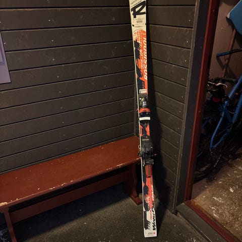 Ikke brukt på 20-30 år og trenger en grundig rens, men stålkanter og bindinger er i god stand.