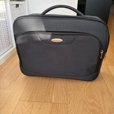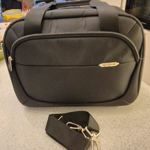 Samsonite bag i stoff. Bagen er i svart tekstil med lys innside og har bærehåndtak og avtakbar/skulderreim med polstret skulderpute. Hovedrommet er romslig med stropp for å holde innholdet på plass. I tillegg har bagen flere glidelåslommer på utsiden for organisering av mindre gjenstander. Egner seg til reise, trening eller helgeturer.