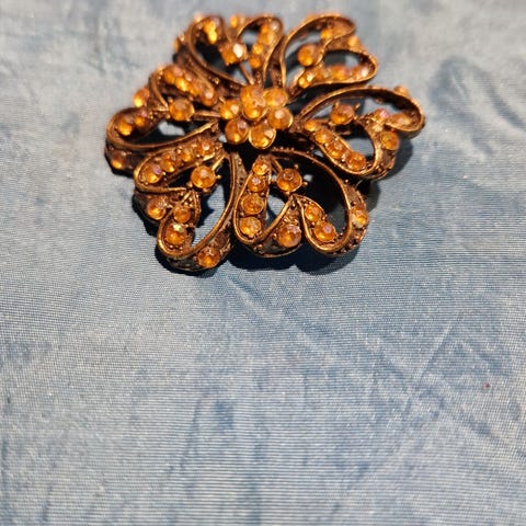 søkeord: pin smykke vintage retro metall pynt accessories mote dekor samler gave klassisk skjerfpynt pynt til skjerf oransje brun brunt mønster