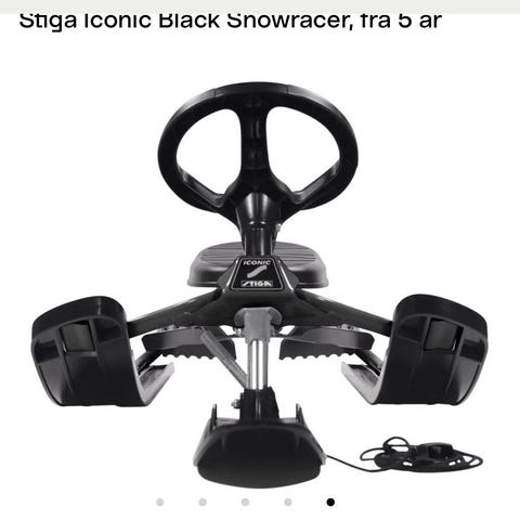 Stiga Snowracer rattkjelke i svart plast med metallmeder. Kjelken har rattstyring, fotbrems og snor for trekking. Egnet for bruk i akebakker på snø. Må hentes. Kr 300.- pr stk