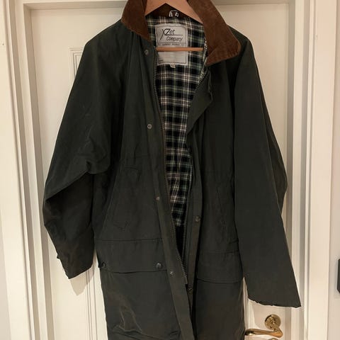 Oilskin jakke grønn med avtakbar hette