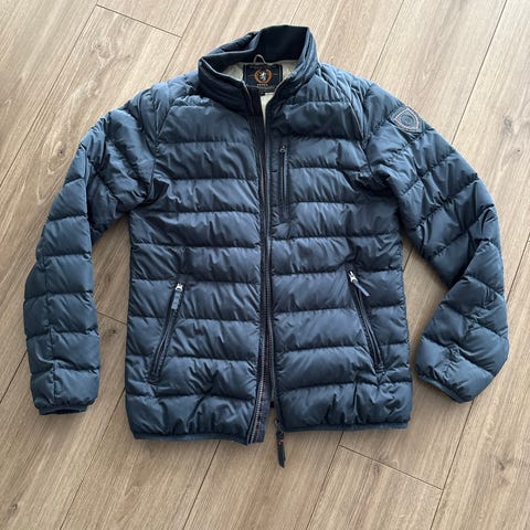Redford dunjakke for herre i størrelse L. Jakken er rød og fylt med dun, med vatterte kanaler som gir jevn fordeling av isolasjonen. Den har gjennomgående glidelås i front og glidelåslommer i sidene. Kragen er lett oppstående for ekstra beskyttelse rundt halsen. Innvendig har jakken kontrastfôr og merking som viser at dunen er RDS-sertifisert (Responsible Down Standard). Egnet som lett og varm ytterjakke i kjøligere vær.