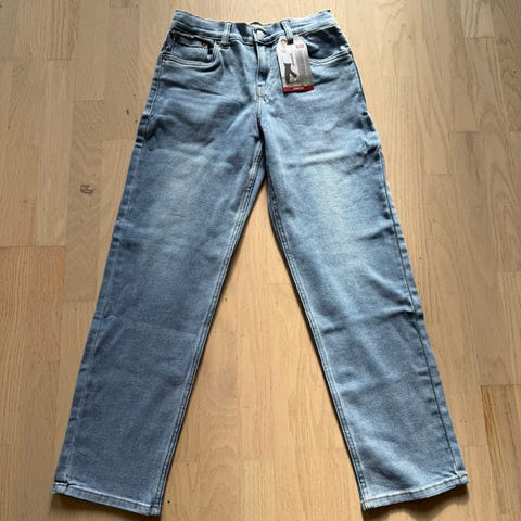 Levi's olabukse for gutt i størrelse 152. Buksen er laget av bomull og har blå denimfarge med lett vasket uttrykk. Klassisk 5-lommers modell med glidelås og knapp i front, samt baklommer med karakteristisk søm. Passer til hverdagsbruk hele året.