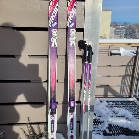 Smørefrie ski til barn - 120 cm + staver 85 cm
