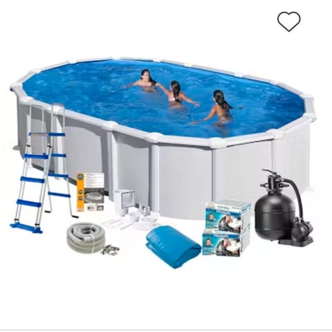 Trampoline med sikkerhetsnett og stige blå