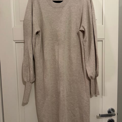 Den har høy hals, lange ermer og ribbestrikkede kanter nederst og ved halsen. Passer som en varm og myk hverdagsgenser i kjøligere vær.