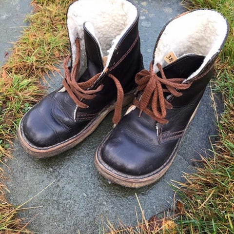 Skinn med sauskinnfor og rågummisåle.