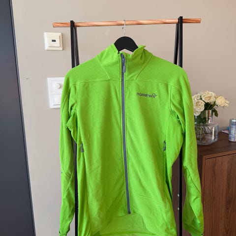 Norrøna fleecejakke for herre i størrelse S. Jakken er grønn med kontrastfelt på brystet og høy krage. Den har hel glidelås i front, glidelåslomme på brystet og to glidelåslommer i sidene. Materialet er myk fleece som gir god isolasjon og komfort. Egnet som mellomlag eller ytterlag i tørt vær til hverdagsbruk og friluftsaktiviteter.