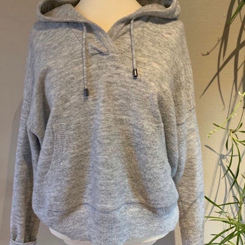 Second Female hettegenser for dame i størrelse M. Genseren er beige og laget i bomull. Modellen har hette med snøring, lange ermer med mansjetter og ribbekant nederst. Genseren har stikklommer i sidene og myk.