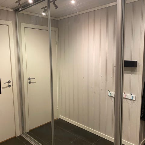 Selger to flotte skyvedører fra HTH – passer til garderobe eller oppbevaringsløsning.