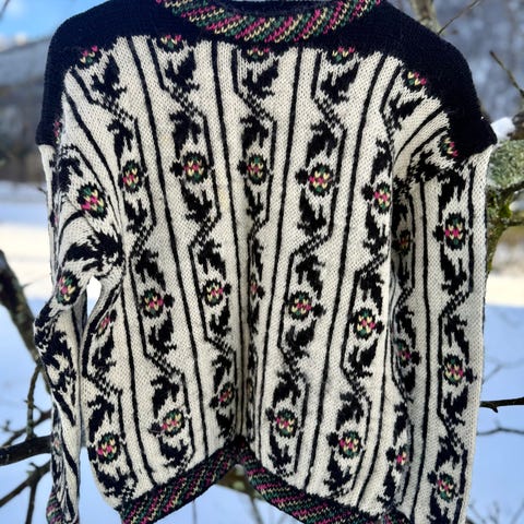 HÅNDSTRIKKET GENSER. Str. Se tommestokk på bildene.