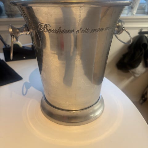 Stilren og elegant champagnekjøler fra La Grandeur de la Maison. Klassisk fransk design i lys finish med fine detaljer og solide håndtak på sidene. Passer perfekt til servering av champagne, vin eller som dekorativ interiørdetalj.