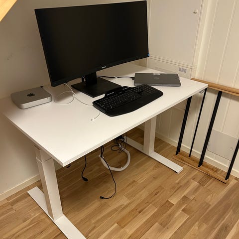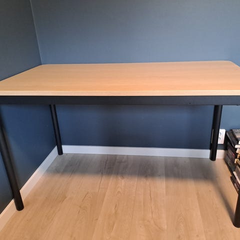 Skrivebordet har minimalt med merker, og er veldig stilren samt smart hvis man trenger litt ekstra plass på bordet uten skuffer.