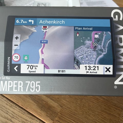 Flott garmin gps med bra glass skjerm i 5 " med grå bakside.