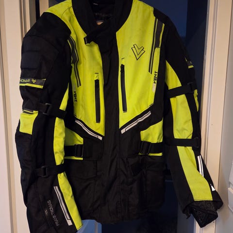 Biltema mc jakke i størrelse XXL. Egnet som kjørejakke til motorsykkel eller scooter, med design som gir god synlighet i trafikken. Passer fint for nybegynnere.