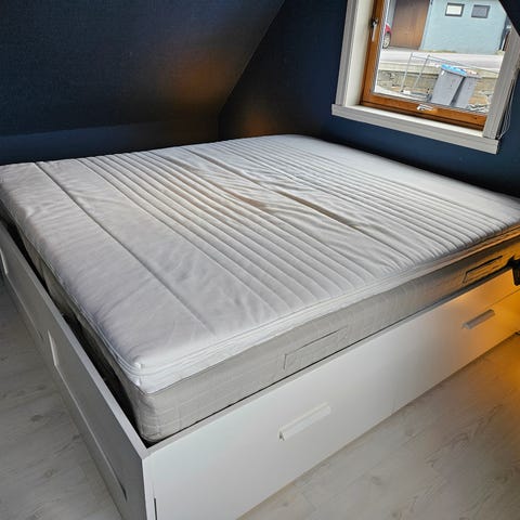 IKEA seng med skuffer gis bort. Sengen har integrerte oppbevaringsskuffer i underdelen, som gir ekstra lagringsplass for for eksempel sengetøy eller klær. Passer godt i rom der man ønsker å utnytte plassen effektivt. Egnet som enkeltseng eller dobbeltseng for barn, avhengig av madrassstørrelse som brukes.