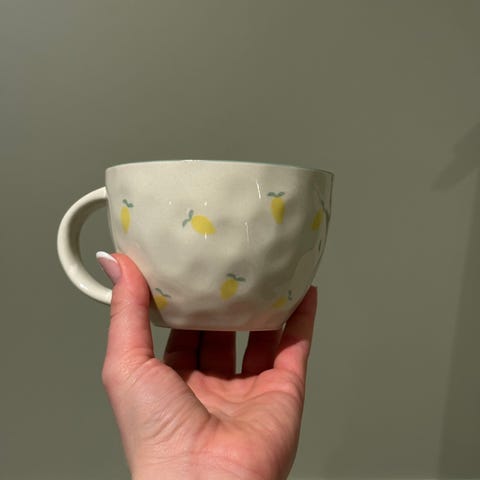 2 tekoppen med jordbær på fra søstrene grene. Nesten ikke brukt. 11cm i diameter.