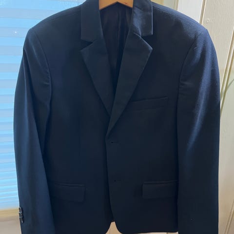 Cubus dressjakke for gutt i størrelse 146 og bukse str 140. Jakken er svart og laget i bomull. Klassisk dressmodell med krage og slag, knappelukking foran og lommer.