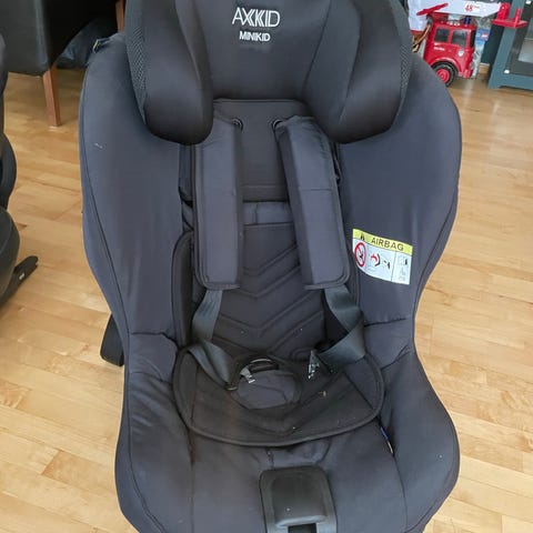 Axkid barnesete for barn opptil 25 kg. Barnesetet monteres bakovervendt i bilen og festes med bilens belter samt støtteben og forankringsstropper. Det har intern 5-punkts sele med polstrede skulderputer og justerbar hodestøtte. Trekket er i svart tekstil. Egner seg til bruk i bil for sikring av barn innenfor vektområdet som er angitt på setet (0–25 kg).
