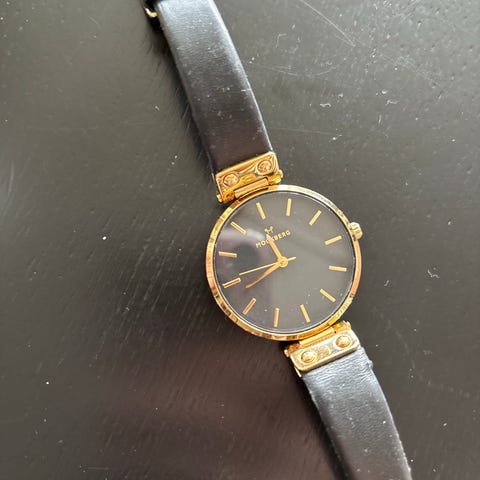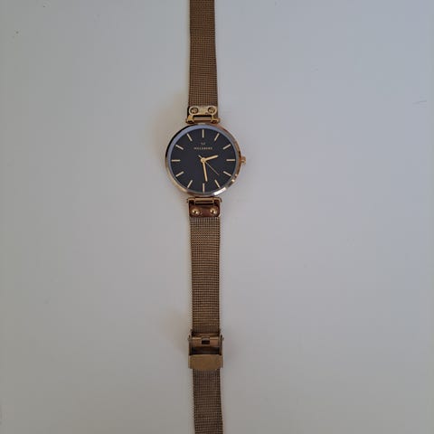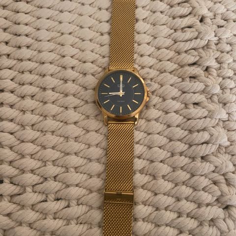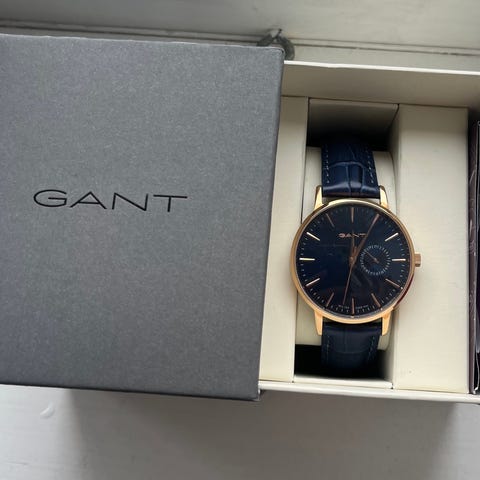 GANT Park Avenue G127017 dameklokke med kvartsurverk. Klokken har svart urskive, gullfarget mesh-lenke i rustfritt stål og 32 mm kasse i rustfritt stål. Den er pent brukt og i god stand, uten svært synlige riper eller merker.