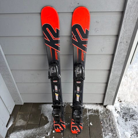 K2 twintip alpinski med bindinger. Lengde ca 136 cm.