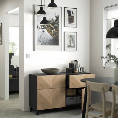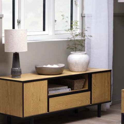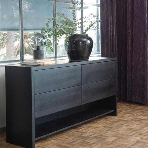 Kommode fra serien Limfjorden til Jysk. 3+3 skuffer i lys eikefarget.