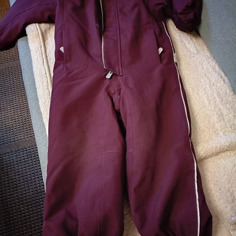 Vinterdressen str 116. Det er 3 holler på forskjellige steder men den funker fint hos oss. Hentes på workinnmarka området ellers kan den sendes.