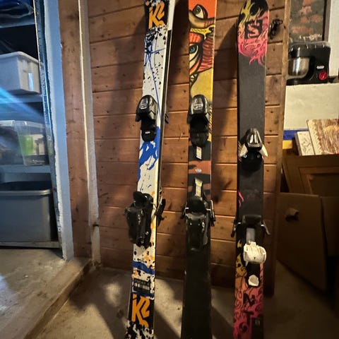 K2 twintip 128cm Herlige park ski. Har limt en liten flik nederst (kun overflatisk), selges 600.-ferdig pruta. Må hentes