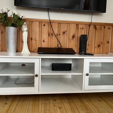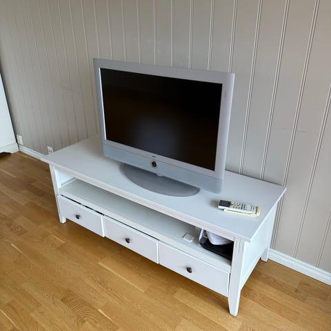 Selger pent brukt og relativt ny tv-benk fra IKEA. Den har ingen slitasje eller synlige bruksmerker. Ny pris er 599kr. Se siste bildet for mål.