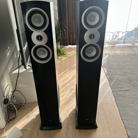 Høyttalerne egner seg til bruk i stereoanlegg eller som frontkanaler i et hjemmekino anlegg