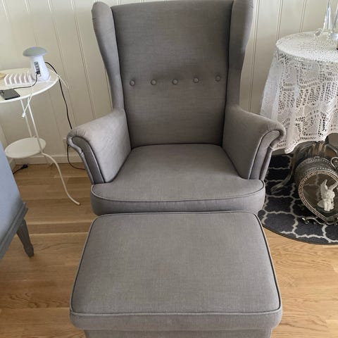 Ørelappstol med puff selges - pent brukt