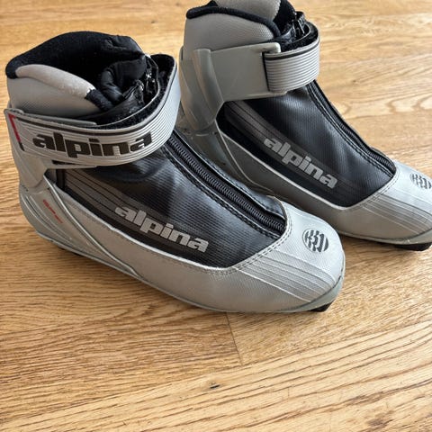 Alpina langrennsstøvler i svart og grå farge. Støvlene har snøring kombinert med glidelås og overtrekk som beskytter mot snø og fukt.