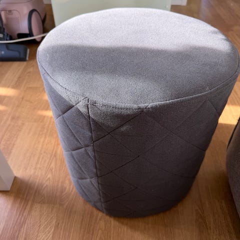 Selger to fine svarte puffer fra Bohus da vi har fått nye stoler med nye krakker til. Størrelse finner du på vedlagt bilde. Selges for 500kr per stk. eller bud.