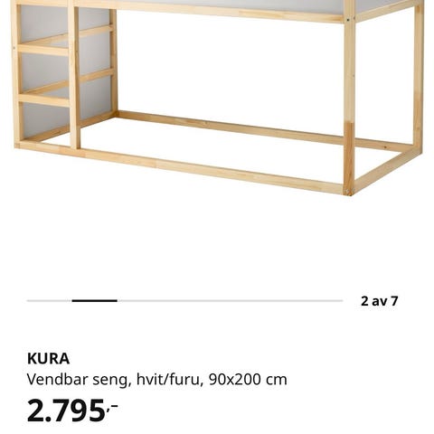 Selges uten madrass da den skal brukes videre i ny seng. Sengen er fint brukt. Det er rom til lek, ekstra oppbevaring, eller overnattingsbesøk under sengen.