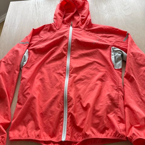 Bergans jakke for dame i størrelse M. Jakken er i en rosa farge og har hette med stramming. Lett materiale som egner seg godt som ytterlag på tur og til hverdagsbruk. Lukkes med glidelås i front og har elastiske avslutninger ved ermene. Klassisk Bergans-logo på ryggen.