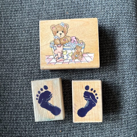 Stempler med baby-tema til kort og scrapbooking🧸 De fleste stemplene er helt ubrukte