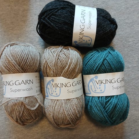 Viking Naturgarn i 100 % ull i grønn farge. Kan toves. Pinnestørrelse 8 mm, med strikkefasthet ca. 12 masker per 10 cm. 2 nøster er helt nye. Stort nøste fremstår som nytt. Sendes mot porto.